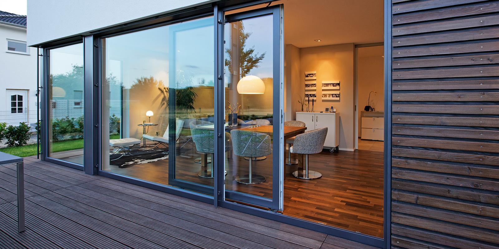 - Портальные системы: Раздвижные или подъемно-сдвижные двери, которые обеспечивают широкий проход на террасу или веранду, объединяя дом с приусадебным участком.
